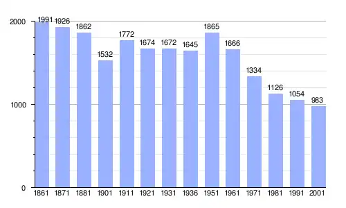 | Gráfica de evolución demográfica de Pedivigliano entre 1861 y 2001 |