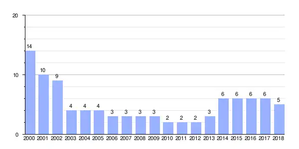 | Gráfica de evolución demográfica de Pedral entre 2000 y 2018 |