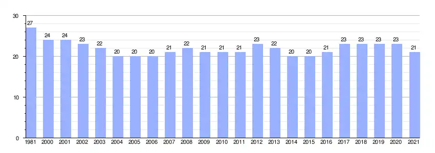 Población de derecho (2000-2021) según los censos de población del INE a 1 de enero de cada año.[7] |