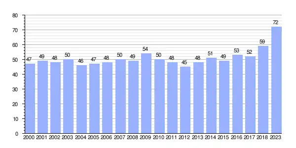 La población registrada el 1 de enero de 2023 era de 72 habitantes, de los cuales 32 eran hombres y 40 mujeres.