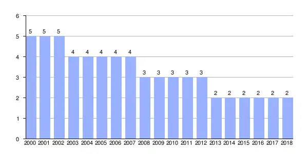 | Gráfica de evolución demográfica de Pedreira entre 2000 y 2018 |