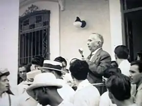![]() Don Pedro Manuel Fabregat en un discurso político en el Ayuntamiento de Ranchuelo | ||
