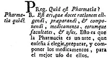 - Por ejemplo, define farmacia como el arte que enseña a elegir, preparar y componer los medicamentos para el mejor uso de ellos