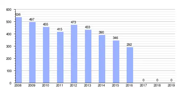 | Gráfica de evolución demográfica de Pedroche[1] entre 1842 y 2021 |
