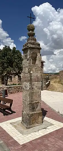 Consiste en una columna de unos tres metros de altura hecha de bloques de piedra sillar o de ladrillo, dependiendo de las zonas, culminada normalmente en una cruz de hierro o una esfera de piedra. Habitualmente suele tener uno o varios azulejos policromados con algún motivo religioso (santo o virgen). También hay ejemplares en los que se ubica una estatuilla religiosa en una oquedad a modo de capilla en lugar del azulejo o en otros casos, simplemente hay una inscripción o nada.