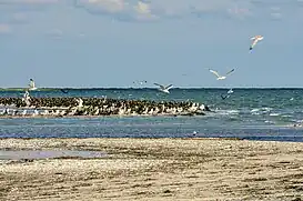 El extremo occidental de la península se extiende hasta el peñón de Kinburn.