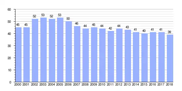 | Gráfica de evolución demográfica de Pena entre 2000 y 2018 |