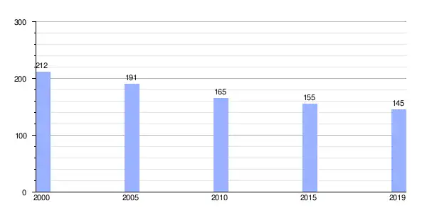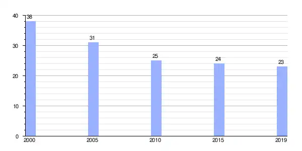 | Gráfica de evolución demográfica de Penarrubia (aldea) entre 2000 y 2019 |