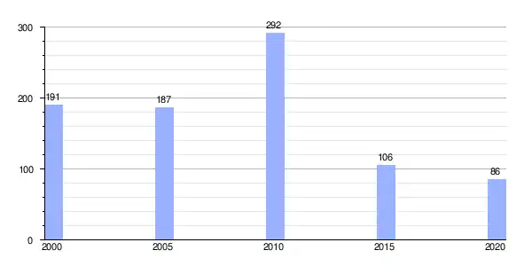 | Gráfica de evolución demográfica de Penas entre 2000 y 2020 |