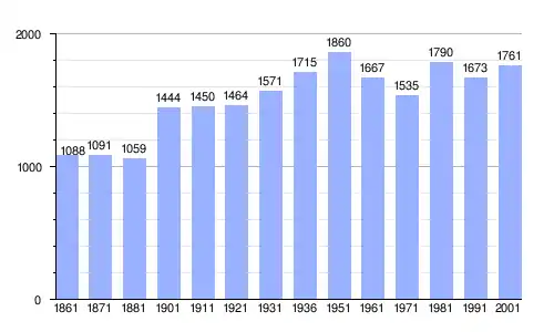 | Gráfica de evolución demográfica de Penna Sant'Andrea entre 1861 y 2001 |