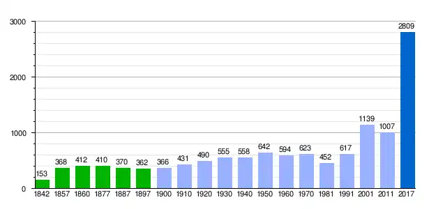 Población de derecho (1842-1897, excepto 1857 y 1860 que es población de hecho) según los censos de población del siglo XIX.[3] Población de derecho (1900-1991) o población residente (2001) según los censos de población del INE.[3] Población según el padrón municipal de 2017 del INE. |