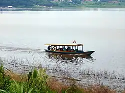 Un peque-peque surcando la laguna Yarinacocha (Perú)