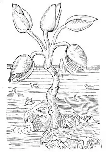 Antes del conocimiento preciso de la migración de las aves, se pensaba que las barnaclas o gansos cariblancos Branta leucopsis, se desarrollaban a partir de estos crustáceos. De ahí proceden los nombres ingleses de "goose barnacle" y "barnacle goose" y el nombre científico Lepas anatifera (Latín anas = "pato"). La confusión surgía de las similitudes en color y forma. Como con frecuencia los percebes se encuentran fijos a la madera flotante se asumía que esta madera procedía de árboles que habían caído al agua. Así lo afirma el monje galés Giraldus Cambrensis en su Topographia Hiberniae.[2]