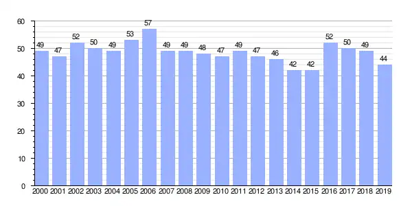 | Gráfica de evolución demográfica de Pereira (parroquia) entre 2000 y 2019 |