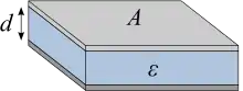 Un condensador eléctrico es un componente electrónico capaz de almacenar cargas en dos armaduras muy grandes y poco espaciadas. La capacidad eléctrica (expresada en faradios) es la cantidad de carga que pueden soportar las armaduras por unidad de tensión creada entre ellas. El voltaje aquí representa la energía gastada para pasar un culombio de carga de una armadura a la otra: cuanto más carga hay en las armaduras, más fuerza significativa sufre el culombio desplazado, aumentando así la energía gastada durante su paso, y por lo tanto la tensión entre las dos armaduras. Por lo tanto, para conocer la capacidad es fundamental conocer la fuerza ejercida por las cargas presentes sobre las armaduras. Sin embargo, esta fuerza es proporcional a la densidad de carga de las armaduras por unidad de superficie: 15 C recogidos sobre una superficie de 10 m² producen así la misma fuerza que 1,5 C sobre una superficie de 1 m². Ahora bien, este vínculo es exactamente el que establece la permitividad, que asocia a un determinado medio la densidad de carga superficial necesaria para ejercer una fuerza de 1 N sobre 1 C de carga. Si las dos armaduras están separadas por el vacío, basta, para encontrar la relación de capacidad entre carga y tensión de las armaduras, multiplicar ε0 por el área de éstas y dividirla por la distancia entre ambas: