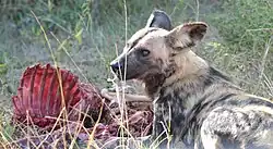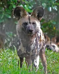 ![]() Perro salvaje africano en el parque nacional de Chobe, Botsuana. | ||