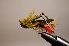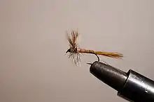 - Pesca con Ninfa: Se imita con el señuelo las larvas de las moscas en su periodo de vida acuático. La ninfa se fabrica más gruesa, con pocos pelos o plumas. Las tres ninfas básicas son: Zug Bug, Hare's Ear (Oreja de Liebre) y pheasant tail.