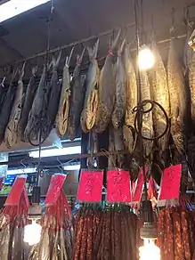 El pescado salado al estilo cantonés (en chino tradicional, 廣東鹹魚; en chino simplificado, 广东咸鱼; pinyin, Guǎngdōngxiányú; Yale cantonés, Gwong2 Dung1 Haam4 Yu2; también conocido como "Pescado salado, estilo chino") es un alimento tradicional chino originario de la provincia de Guandong (Cantón). Es pescado preservado o curado con sal, y fue un alimento básico en Guandong. Históricamente se ganó el apodo de "comida de los pobres" ya que su extrema salinidad era útil para agregar variedad a las comidas más sencillas a base de arroz. Se encontró que el pescado salado al estilo chino estaba en la lista del Grupo 1 de cancerígenos conocidos,[1][2] aunque ya se sospechaba y se estudiaba su relación con el cáncer desde la década de 1960[3][4] debido a la incidencia alta de cáncer nasofaríngeo, un tipo extremadamente raro de cáncer de nariz y cabeza que ahora se sabe está vinculado a un alto consumo de este plato.