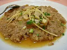 - Empanada de carne al vapor con pescado salado ( 鹹魚蒸肉餅)
