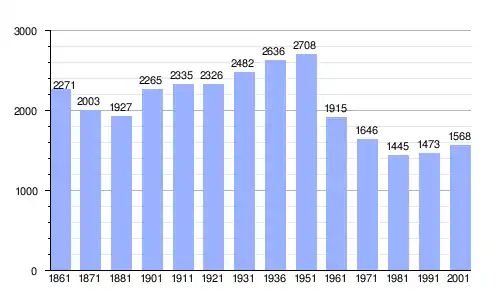 | Gráfica de evolución demográfica de Pescosolido entre 1861 y 2001 |