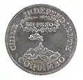 El peso Coquimbo llevaba el mismo diseño que el peso Independiente acuñado en Santiago, que fue definido por el bando de Hilarión de la Quintana el 9 de junio de 1817, salvo algunas diferencias. El tipo de las montañas, el humo del volcán que se inclinaba a la izquierda y la corona de laureles diferían con las piezas santiaguinas,[1] además de la inclusión de la inscripción coquimbo en reemplazo de santiago, para realzar el lugar de acuñación, en la parte inferior del volcán.[3]