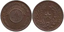 ![]() Reverso de un peso paraguayo, acuñado por la Casa de Moneda (Argentina) en 1889. | |||||