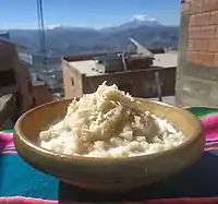 En Bolivia es un plato consumido particularmente durante Semana Santa.[6] También es usual comerlo como desayuno. Se sirve añadiéndole un ahogado de cebolla y ají amarillo; también se consume simplemente con queso rallado por encima.[7]