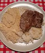En Perú se puede acompañar con arroz blanco y un bistec de carne. Es consumido mayoritariamente como desayuno en Puno, se suele preparar en los hogares y también se realiza su venta en calles y mercados. También es típico su consumo en Viernes Santo durante la celebración de Semana Santa.[4]
