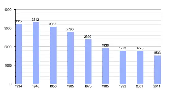 | Gráfica de evolución demográfica de Petarnitsa entre 1934 y 2011 |