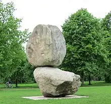 Una roca encima de otra roca en los jardines de Kensington, fuera de la Serpentine Gallery.