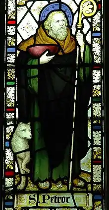 Después de 30 años como abad, Petroc viajó a Roma, y a Jerusalén, y por último a India donde vivió siete años en una isla en el Océano Índico. Petroc regresó a Bretaña con la compañía de un lobo que él se había encontrado en India.