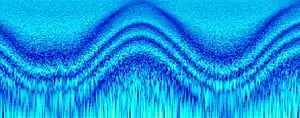 Espectrograma de un phaser de 8 etapas modulado por un seno LFO aplicado al ruido blanco.