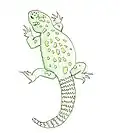 Longitud de 15 a 20 cm. Corresponde a un lagarto robusto, aplastado dorsoventralmente. Para huir de los depredadores puede expandir su cuerpo hacia los lados y así poder meterse entre las rocas. Su coloración es negra con tonos grises y verdes oscuros (hembras) o verdes brillantes y amarillos fosforescentes (machos).