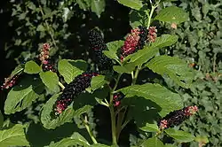 ![]() Follaje y fruto de Phytolacca acinosa | ||
