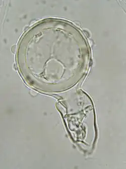 Phytophthora cambivora es un protista (antiguamente considerado un hongo) que produce una fitopatología (micosis) llamada tinta del castaño. Vive en el suelo de forma saprofita nutriéndose gracias a materias en descomposición, e infectando al castaño a través de las raíces más pequeñas. En algunos casos mientras las raíces van siendo colonizadas, el cuello de la raíz permanece indemne y el árbol puede ir desarrollando nuevas raíces, con lo que consigue prolongar su vida varios años. En otros casos la infección comienza cerca del tronco, con lo que este se ve rápidamente afectado, muriendo rápidamente el ejemplar.