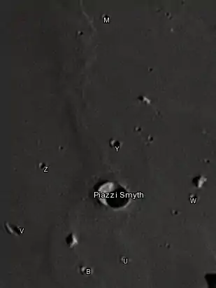 Por convención estos elementos son identificados en los mapas lunares poniendo la letra en el lado del punto medio del cráter que está más cercano a Piazzi Smyth.
