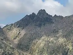 ![]() El pico Almanzor desde la Laguna Grande de Gredos en el circo de Gredos. | ||
