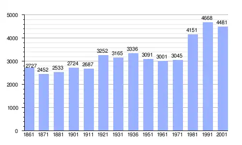 | Gráfica de evolución demográfica de Piedimonte San Germano entre 1861 y 2001 |