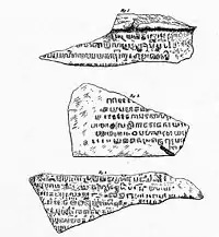 James Prinsep (1799–1840), un estudioso y anticuario anglo-indio que inició el Journal of the Asiatic Society of Bengal, publicó en el Journal en 1837 un escrito del Dr. William Bland del HMS Wolf, quien dijo que había hecho un facsímil de lo que era posible ver en la piedra de arenisca roja: aproximadamente 50 líneas incompletas.[5]