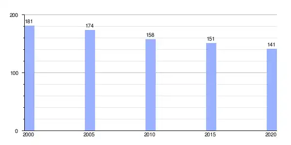 | Gráfica de evolución demográfica de Pedrafita entre 2000 y 2020 |