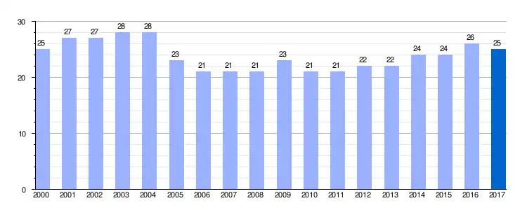 | Gráfica de evolución demográfica de Piedrahíta de Juarros entre 2000 y 2017 |
