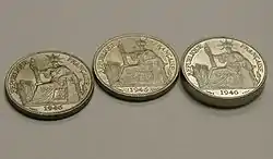 - Esta obra contiene una traducción derivada de «Piedfort» de Wikipedia en inglés, concretamente de esta versión, publicada por sus editores bajo la Licencia de documentación libre de GNU y la Licencia Creative Commons Atribución-CompartirIgual 4.0 Internacional.
