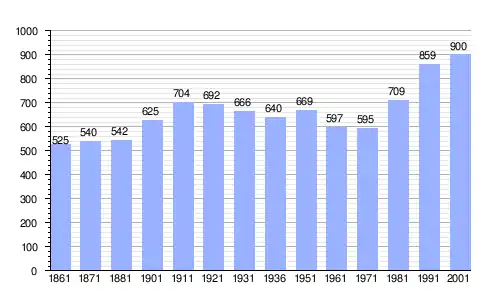 | Gráfica de evolución demográfica de Pieranica entre 1861 y 2001 |