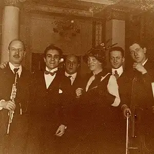 Hans W. de Vries (flauta), Karl Essberger (clarinete), Jakob Malinjak (violín), Albertine Zehme (recitado), Eduard Steuermann (piano) y Hans Kindler (violonchelo).
