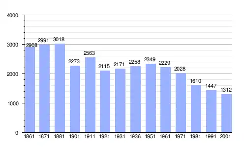 | Gráfica de evolución demográfica de Pietrapertosa entre 1861 y 2001 |