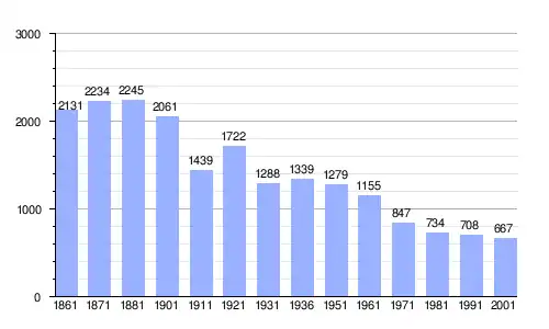| Gráfica de evolución demográfica de Pietraroja entre 1861 y 2001 |