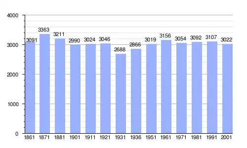 | Gráfica de evolución demográfica de Pietravairano entre 1861 y 2001 |
