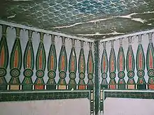 La elección de los colores en el arte pictórico del antiguo Egipto era el resultado de una serie de consideraciones que tenían en cuenta tanto los pigmentos disponibles en cada momento como el simbolismo y estética que el artista quería transmitir.[2] Los artistas egipcios tenían a su disposición seis colores básicos: blanco, negro, rojo, amarillo, verde y azul. Con una paleta tan limitada, cada color podía tener varias interpretaciones o simbolismos, que dependían del mensaje político, religioso, social... que se quería transmitir a través de las decoraciones parietales de las obras sagradas o suntuarias.[3] Por ejemplo, cuando Amón era representado con la piel de color azul, se estaba aludiendo a su aspecto cósmico. Así mismo, la paleta de color y la preparación de las pinturas podía variar en función de la superficie a decorar o los gustos de la Dinastía reinante.[4]