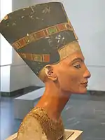 Las excavaciones en Tell el-Amarna sacaron a la luz antiguos talleres dedicados a la fabricación del azul egipcio; en ellos aparecieron pequeñas cantidades de las materias primas empleadas para fabricarlo.[39] El azul egipcio también ha sido identificado en las pinturas murales de la tumba de Nefertari (Dinastía XIX)[41] y en el busto de la reina Nefertiti procedente de Tell el-Amarna (Dinastía XVIII).[49][50]