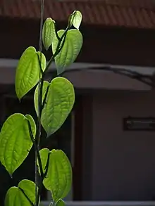 Es una especie perenne trepadora que puede crecer más de 4 m soportándose en árboles, enrejados o cualquier otro soporte. Se propaga fácilmente emitiendo raíces en cuanto los tallos tocan el suelo. Las hojas son alternas, enteras, de unos 5 a 10 cm de largo por 3 a 6 del ancho. Las pequeñas flores surgen en racimos pendulares en las axilas de las hojas, tienen de 4 a 8 cm de largo, aunque a medida que los frutos maduran se van alargando hasta medir unos 7 a 15 cm. El fruto es una drupa que se convierte en el grano de pimienta al madurar.